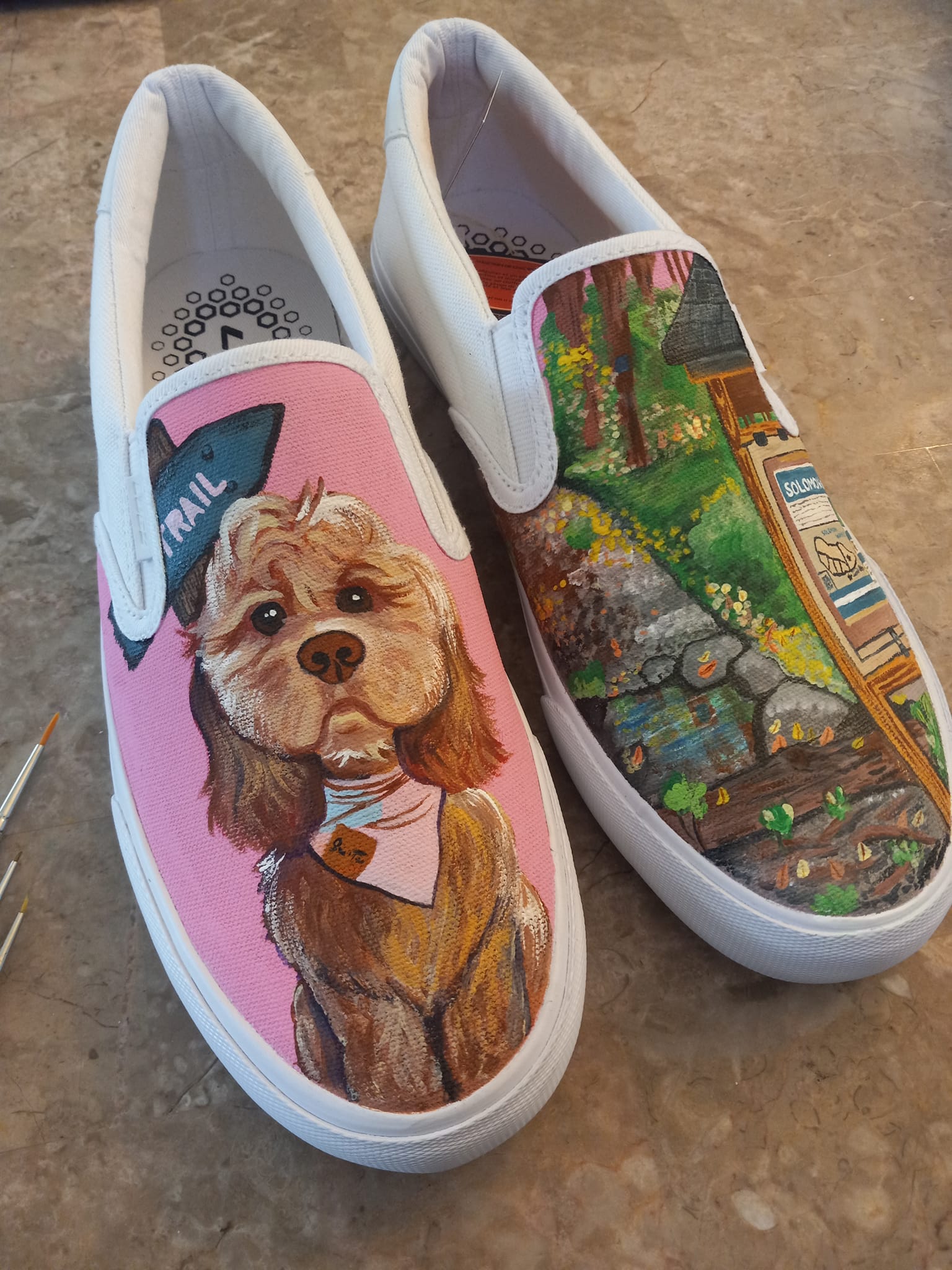 Animal & Detailed Scene Hand-Painted Vans Shoes (Ex: Pup & Hiking Trail) on front of shoe only