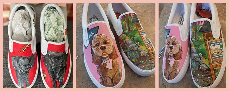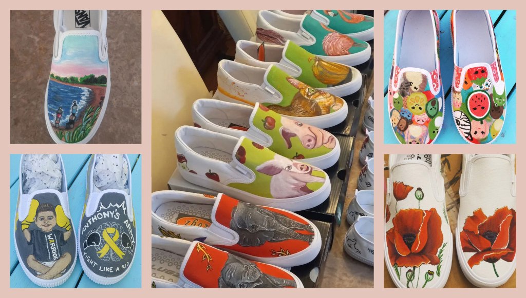 These hand-painted acrylic canvas shoes can be tailor-made to any design of your choosing. Have a favorite pet OR person? A favorite flower? Or specific interest? Send me your idea & I will design something special for you! There may be slight imperfections, as they are homemade (however they are certainly made with lots of love). Canvas shoes are sealed & can be washed separately. Turn-around time and cost depends on the design & shoe brand. Womens & Mens Shoes offered in Lugz & Vans Only. Don’t see your size? Ask me if it is available!