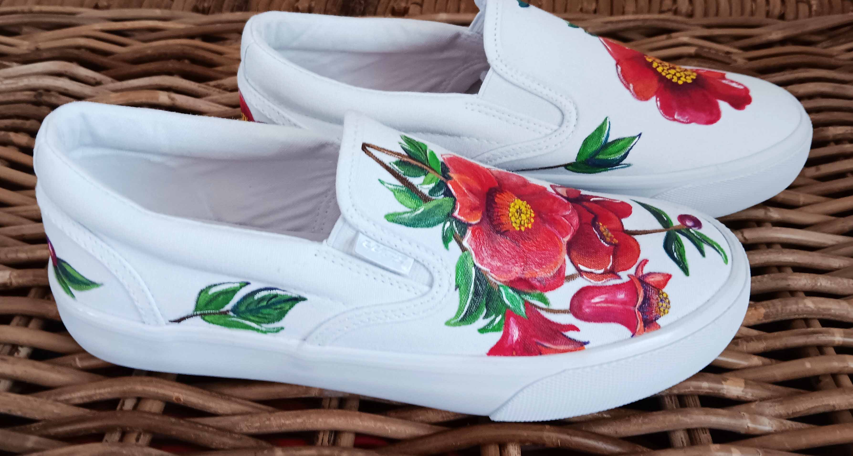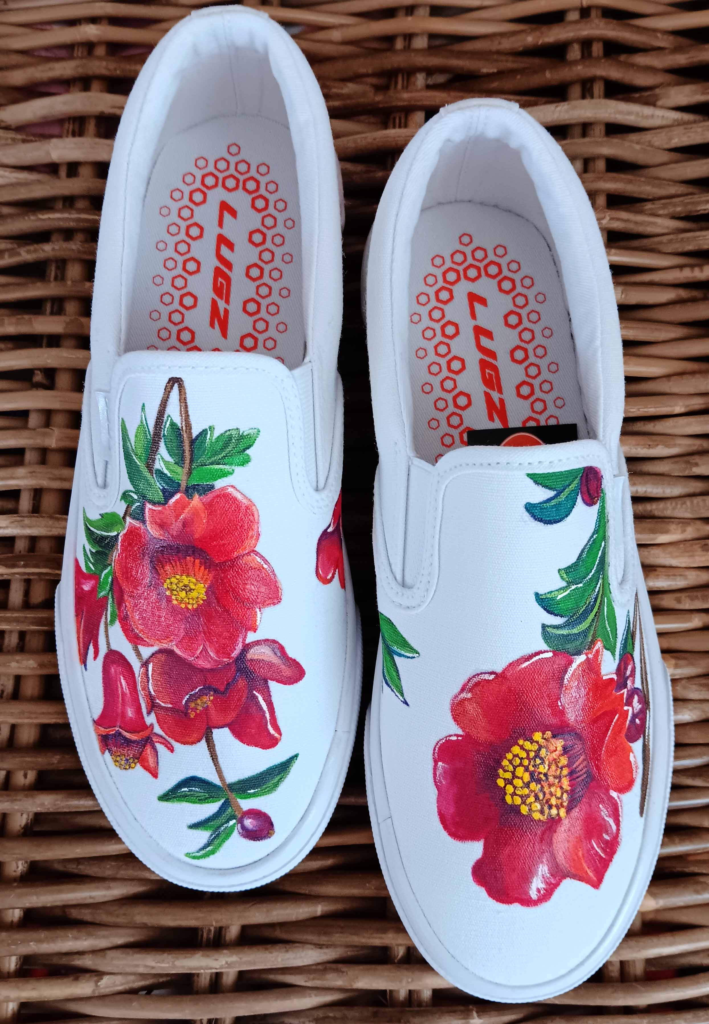@krystalcdesign Pomegranate Flower Shoes for Trip to Spain ✔️ . . . #art #aupportlocal #supportsmallbusiness #supportlocalbusinesses #supportlocalbusiness #painting #shoeart #shoeartist #shoeaddiction #shoeaddict #shoeartistry #flowers #pomegranate #pomegranateflower #travelshoes